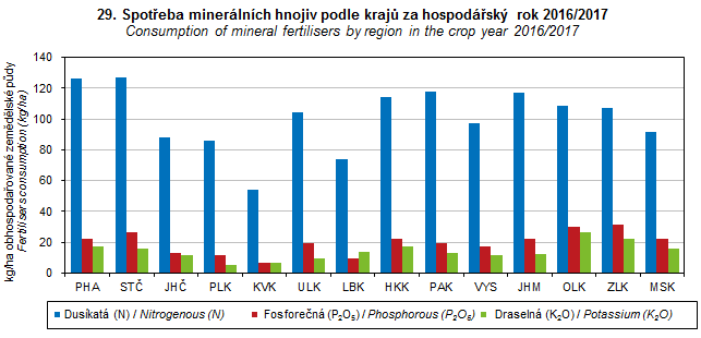 Graph 29. Consumption of mineral fertilisers by region in the crop year 2016/2017