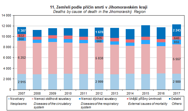 Graph 11. Deaths by cause of death in the Jihomoravský Region