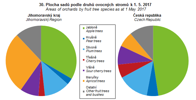 Graph 30. Areas of orchards by fruit tree species as at 1 May 2017