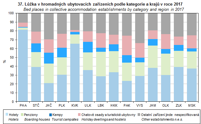 Graph 37. Bed places in collective accommodation establishments by category and region in 2017