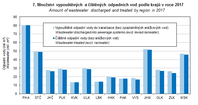 Graph 7. Amount of wastewater discharged and treated by region in 2017