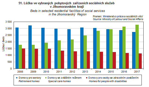 Graph 51. Beds in selected residential facilities of social services in the Jihomoravský Region