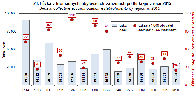 Graph 28. Beds in collective accommodation establishments by region in 2015