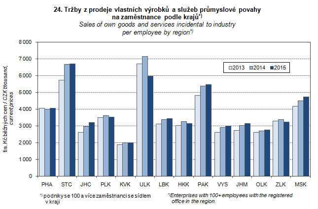 Graph 24. Sales of own goods and services incidental to industry per employee by region