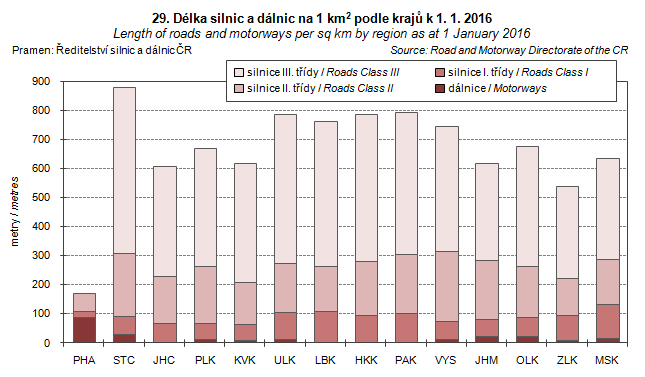 Graph 29. Length of roads and motorways per sq km by region as at 1 January 2016
