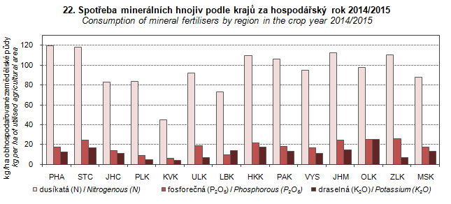 Graph 22. Consumption of mineral fertillisers by region in the crop year 2014/2015