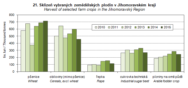Graph 21. Harvest of selected farm crops in the Jihomoravský Region