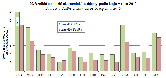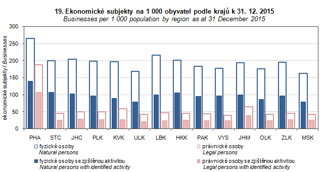 Graph 19. Businesses per 1 000 population by region as at 31 December 2015