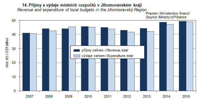 Graph 14. Revenue and expenditure of local budgets in the Jihomoravský Region
