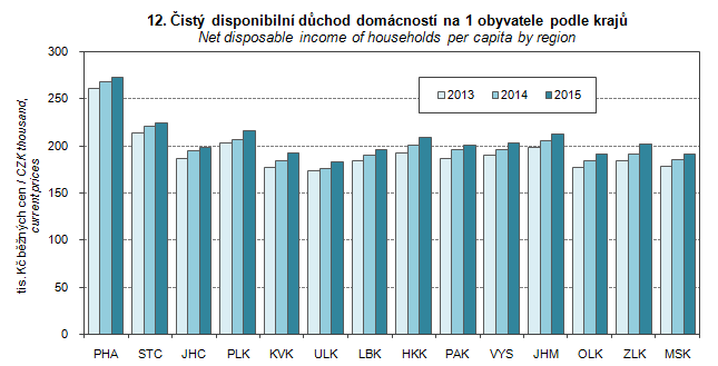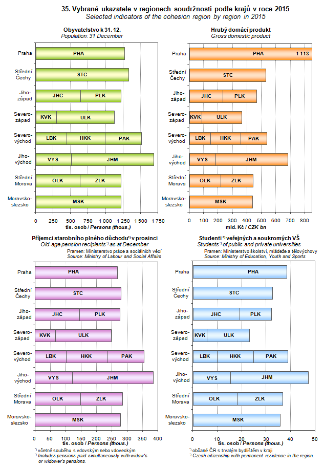 Graph 35. Selected indicators of the cohesion region by region in 2015