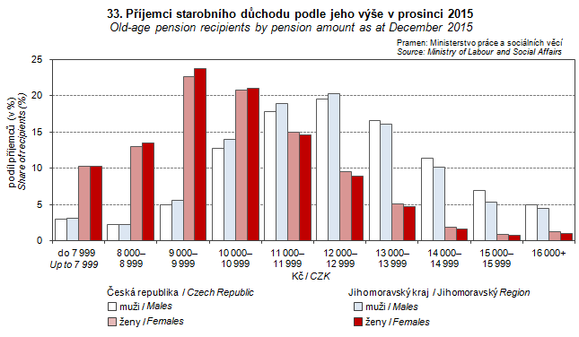 Graph 33. Old-age pension recipients by pension amount as at December 2015