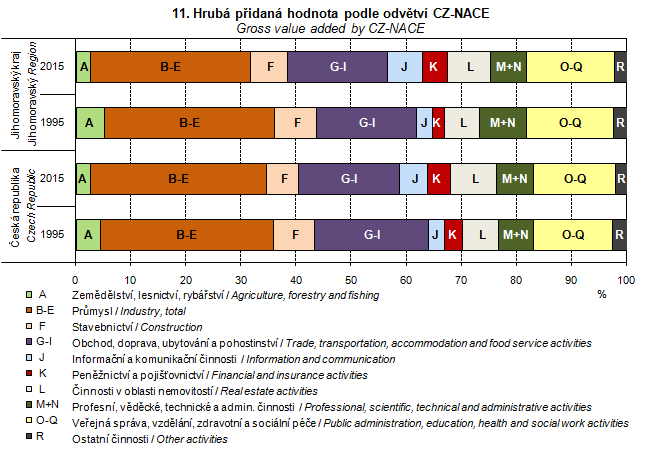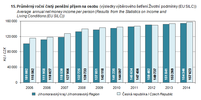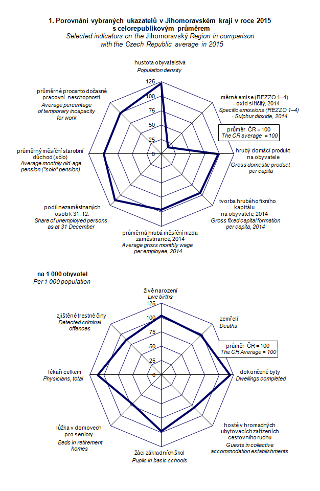 Graph 1. Selected indicators on the Jihomoravský Region in comparison with the Czech Republic average in 2015