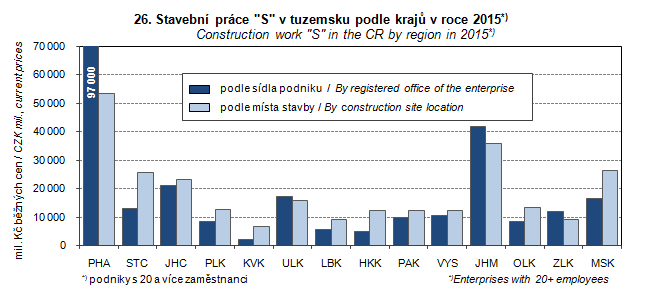 Graph 26. Construction work “S“ in the CR by region in 2015