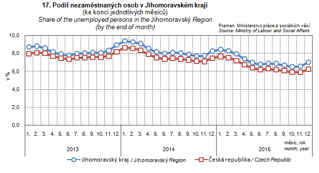 Graph 17. Share of the unemployed persons in the Jihomoravský Region (by the end of month)
