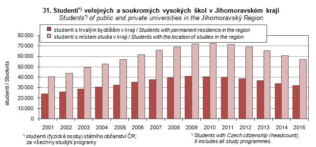 Graph 31. Students of public and private universities in the Jihomoravský Region