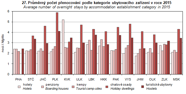 Graph 27. Average number of overnight stays by accommodation establishment category in 2015