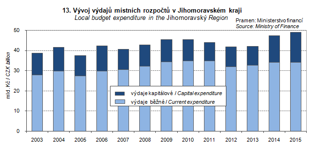 Graph 13. Local budget expenditure in the Jihomoravský Region