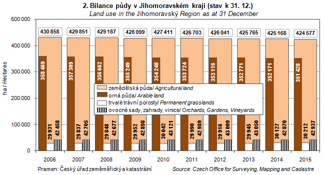 Graph 2. Land use in the Jihomoravský Region as at 31 December