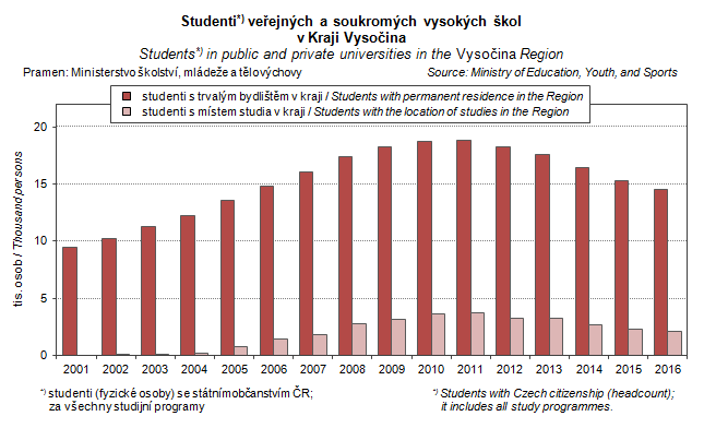 Graph 37. Students in public and private universities in the Vysočina Region