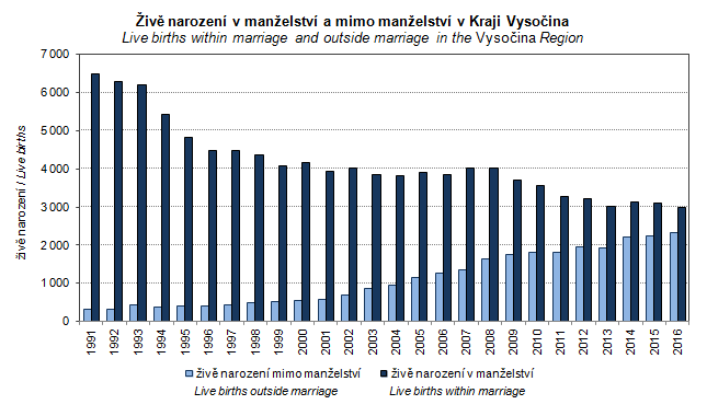 Graph 10. Live births within marriage and outside marriage in the Vysočina Region