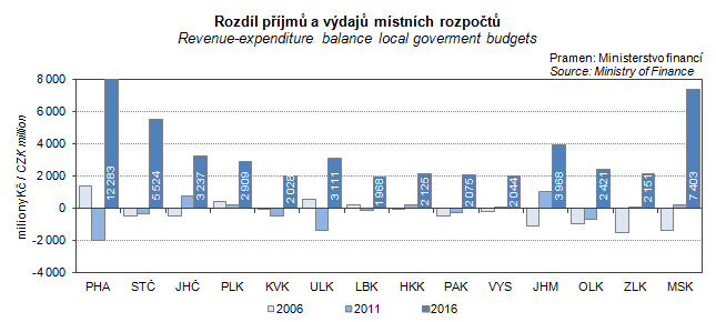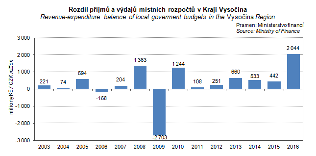 Graph 16. Revenue-expenditure balance local goverment budgets in the Vysočina Region