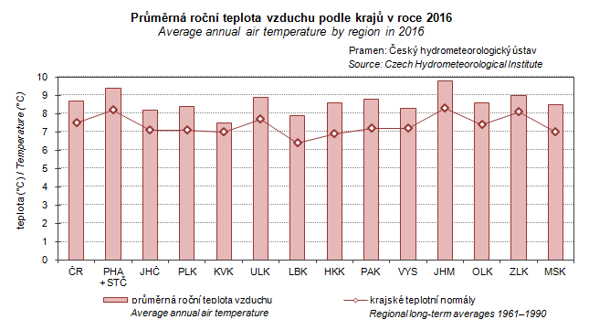 Graph 3. Average annual air temperature by region in 2016