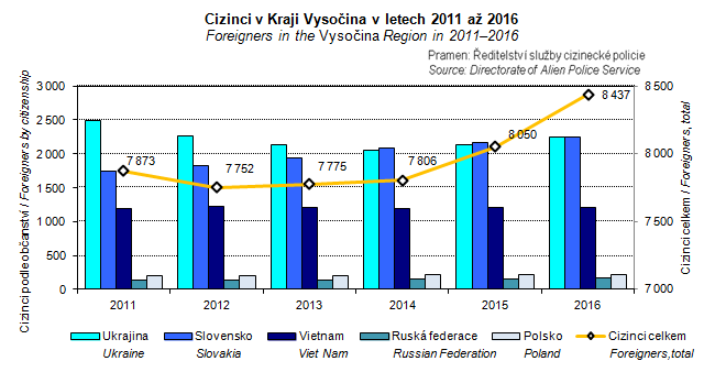 Graph 11. Foreigners in the Vysočina Region in 2011–2016