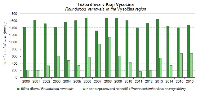 Graph 28. Roundwood removals in the Vysočina region