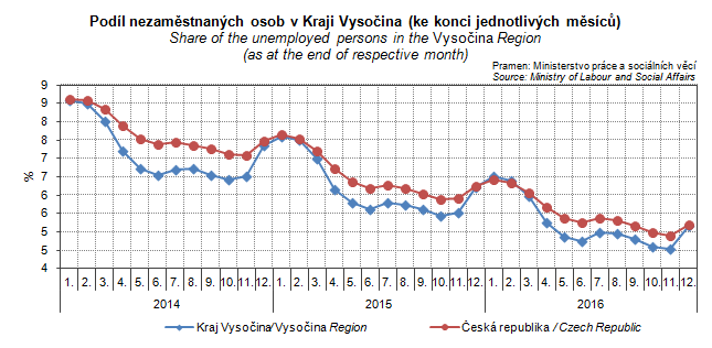 Graph 19. Share of the unemployed persons in the Vysočina Region (by the end of month)