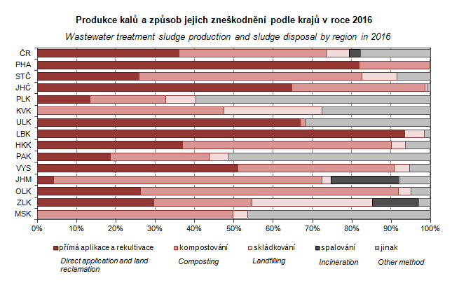 Graph 7. Wastewater treatment sludge production and sludge disposal by region in 2016
