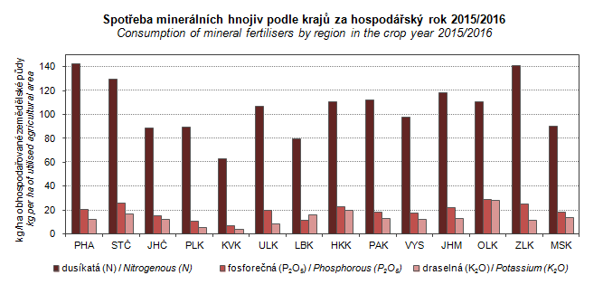 Graph 27. Consumption of mineral fertilisers by region in the crop year 2015/2016