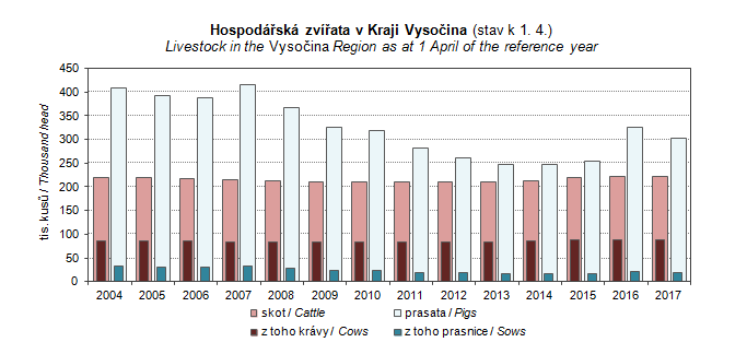 Graph 25. Livestock in the Vysočina Region as at 1 April of the reference year