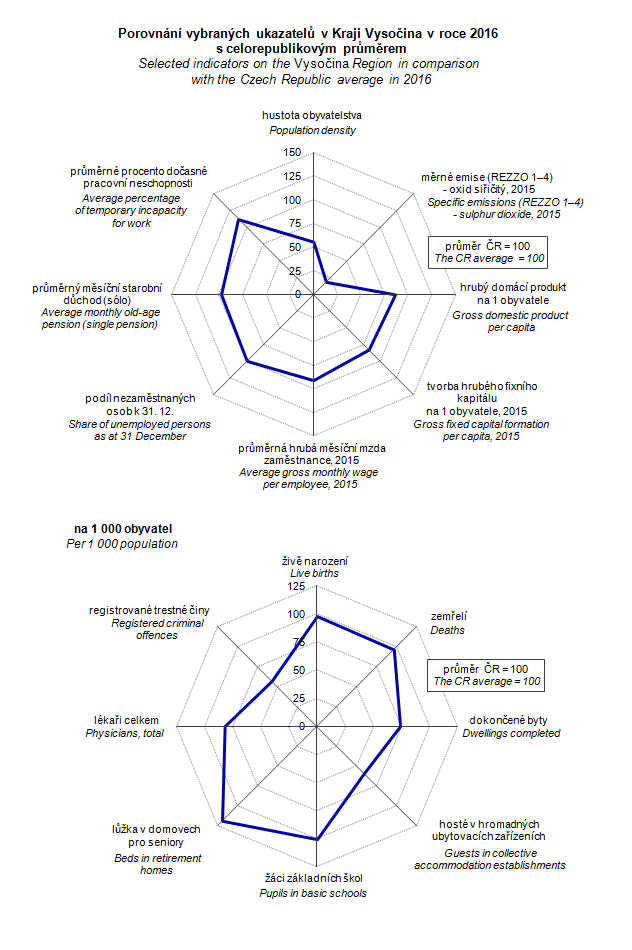 Graph 1. Selected indicators on the Vysočina Region in comparison with the Czech Republic average in 2016