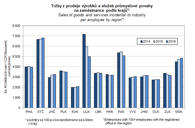 Graph 29. Sales of goods and services incidental to industry per employee by region
