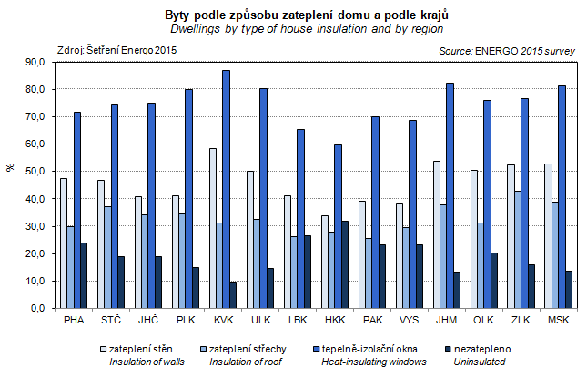 Graph 30. Dwellings by type of house insulation and by region