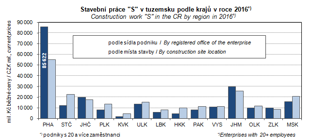 Graph 32. Construction work "S" in the CR by region in 2016