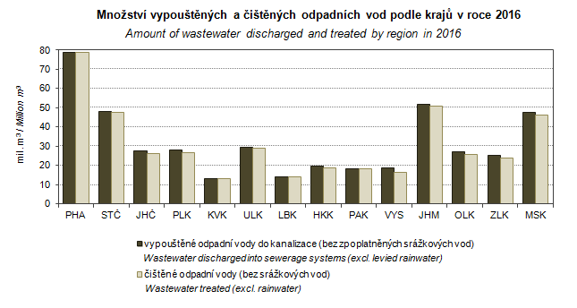 Graph 8. Amount of wastewater discharged and treated by region in 2016