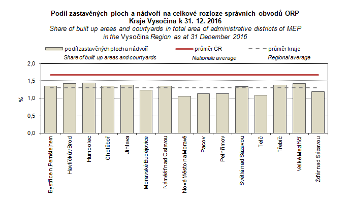 Graph 40. Share of built up areas and courtyards in the total area of administrative districts of MEP in the Vysočina Region as at 31 December 2016