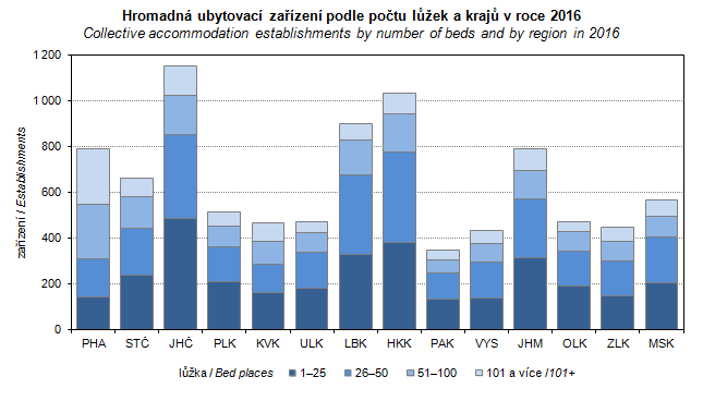 Graph 34. Collective accommodation establishments by number of beds and by region in 2016