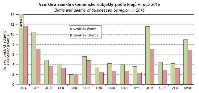 Graph 22. Births and deaths of businesses by region in 2016