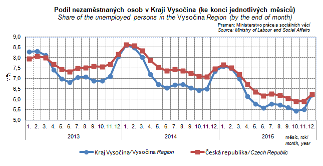 Graph 14. Share of the unemployed persons in the Vysočina Region (by the end of month)