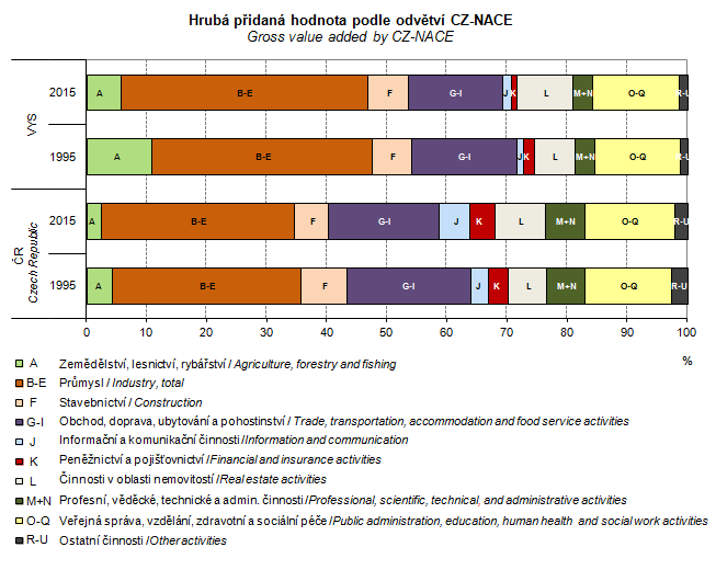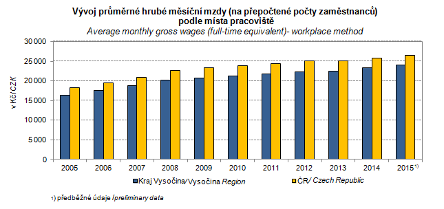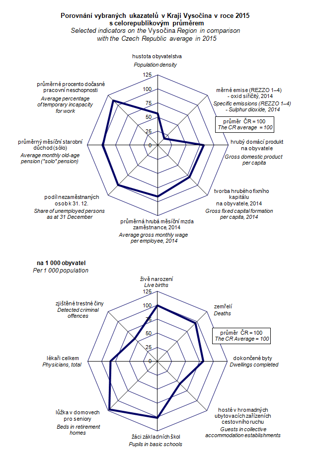 Graph 1. Selected indicators on the Vysočina Region in comparison with the Czech Republic average in 2015