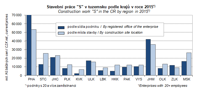 Graph 23. Construction work “S“ in the CR by region in 2015