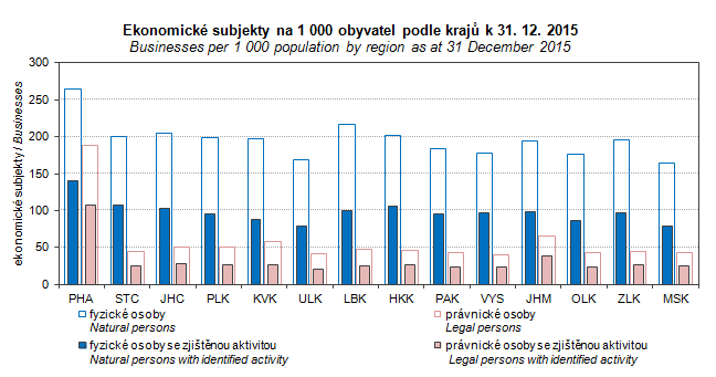 Graph 16. Businesses per 1 000 population by region as at 31 December 2015