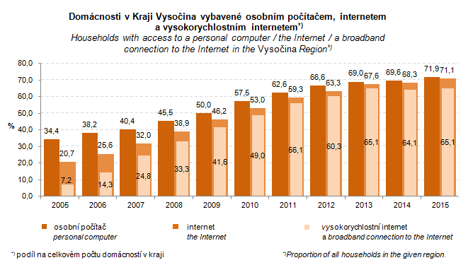 Graph 27. Households with access to a personal computer / the Internet / a broadband connection to the Internet in the Vysočina Region