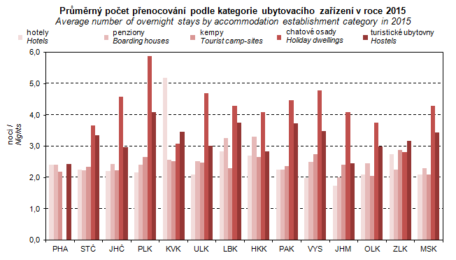 Graph 25. Average number of overnight stays by accommodation establishment category in 2015