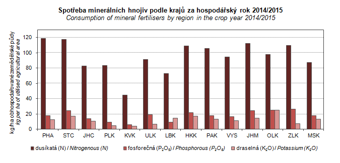 Graph 21. Consumption of mineral fertilisers by region in the crop year 2014/2015