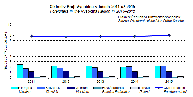 Graph 8. Foreigners in the Vysočina Region in 2011–2015