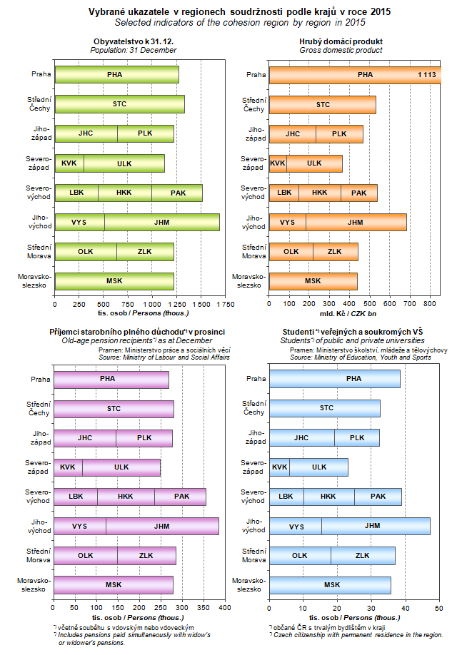 Graph 32. Selected indicators of the cohesion region by region in 2015