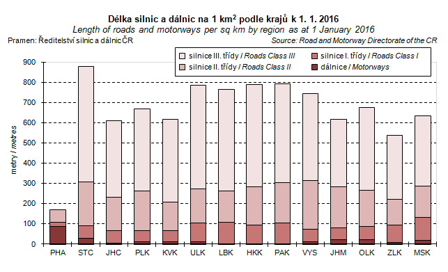 Graph 26. Length of roads and motorways per sq km by region as at 1 January 2016